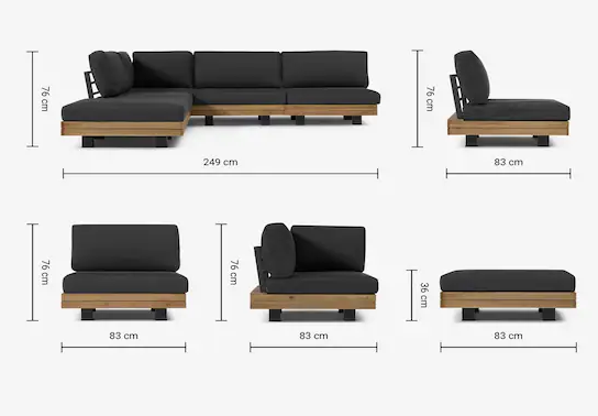 - Losse elementen: L:83 x B:83 x H:58 cm