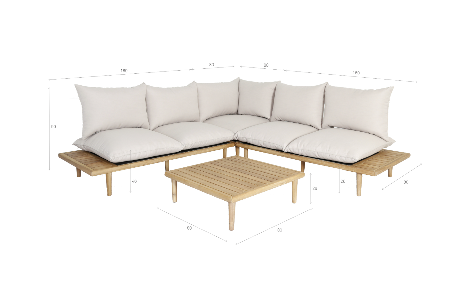 Hoek Loungeset - Phoenix - Acaciahout - Off White - The Outsider