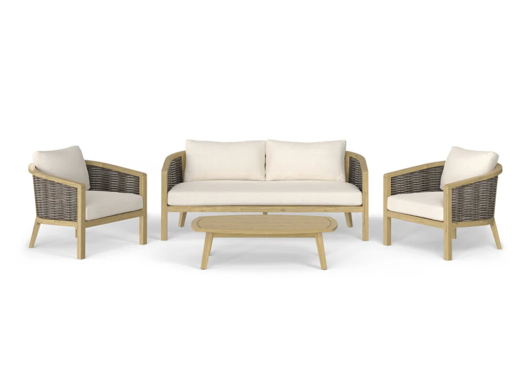 De Parkside stoel-bank loungeset is een complete 5-zits set met 2-zits bank, 2 loungestoelen en salontafel. Met HDPE wicker van gerecycled materiaal, gecombineerd met een massief acaciahouten frame in lichte teaklook. Lees meer