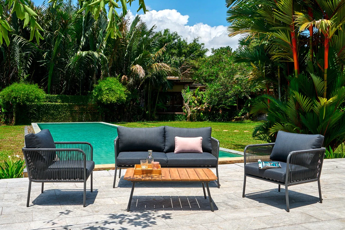 Stoel-Bank Loungeset Tito | Antraciet | Rope & Aluminium | Baratti